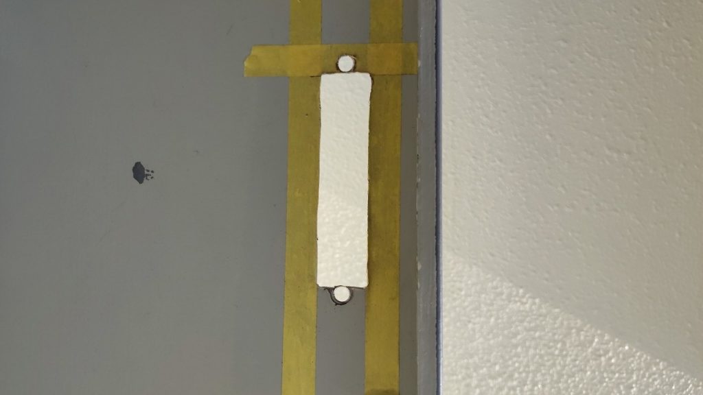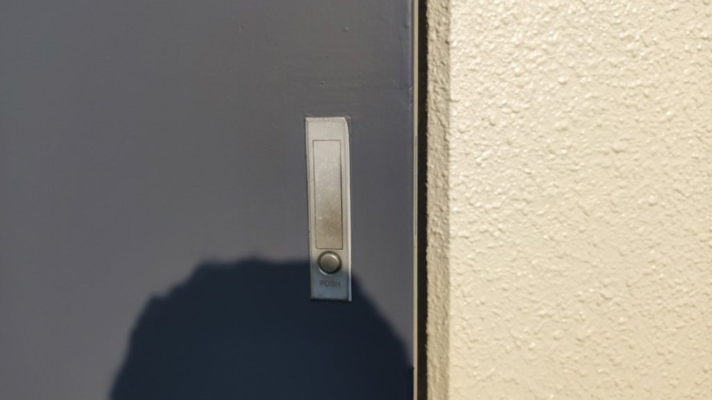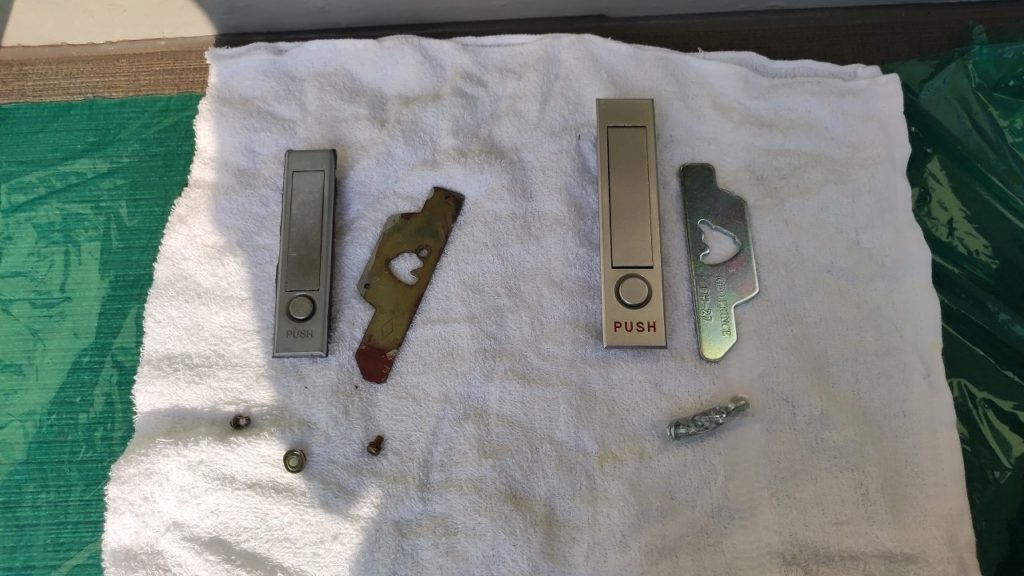 賃貸マンションの玄関横にあるパイプスペース扉に設置された平面ハンドルが故障してしまい、風にあおられた扉が開いて危ないとのことで急ぎ修理をご希望でした。