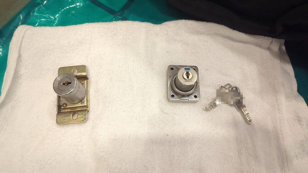 作業中、興味津々でマンション管理人様がガン見状態。作業後に実物を見て触っていただきましたが、違和感なく操作性も良いので是非他の部屋も!とのお話がありましたが、ここの共用部を知り合いの鍵屋さんが請け負っているので、そちらでも大丈夫ですよ?とお話ししておきました。念のため使った錠前の箱を置いてきましたが、普通の鍵屋さんなら外観を見れば何をしたか分かりますね(笑)