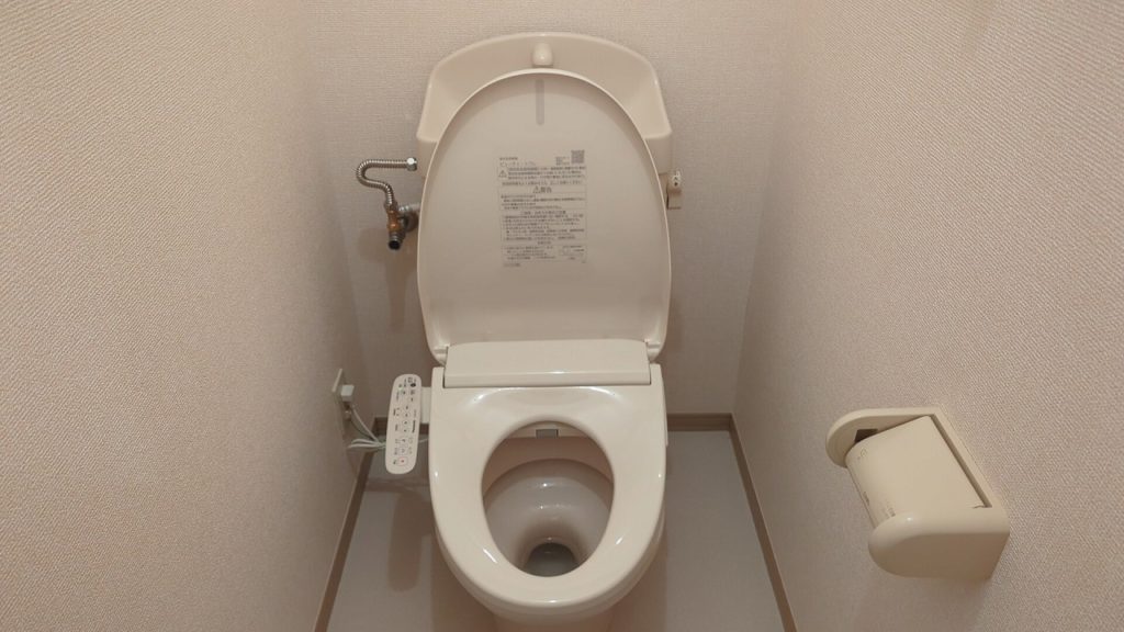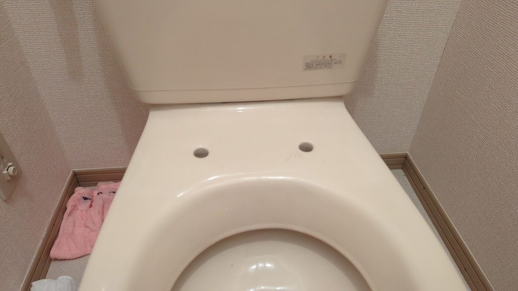 この現場は、退去後の原状回復工事後に追加で温水洗浄便座へ交換することになったお仕事で、ご入居者様がいらっしゃらないので気楽に作業ができます。コンセントも止水栓もあるので、作業としては簡単な部類です。