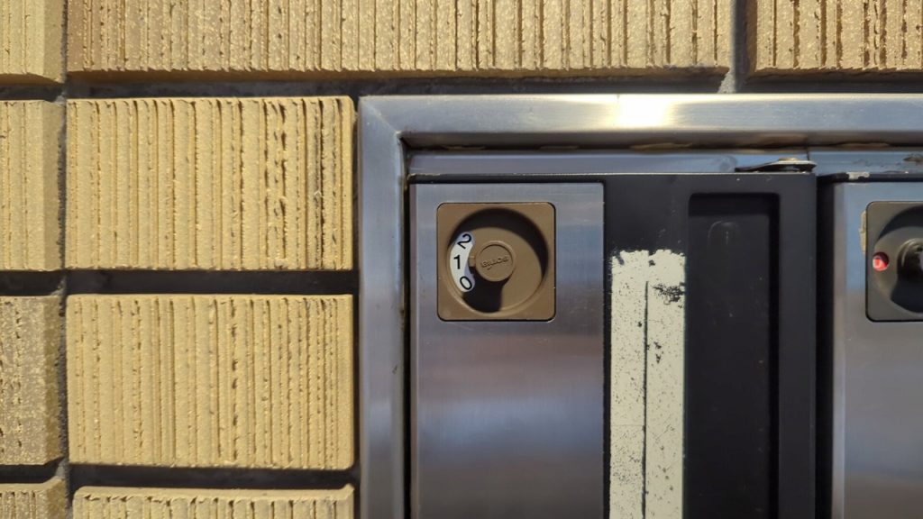 このポスト錠は番号が固定で仕入れの時に選べませんので、基本的に番号が変わってしまいます。この時も同じ番号が良い場合、メーカーに確認しますがしばらくお待ちいただくことになってしまいますと説明すると、それならすぐに交換してもらった方が良いとのことで作業を実施。