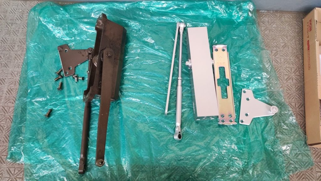 形と色が違うが取り付けできるドアクローザーを持ってきていたので、すぐにやっていいか?と伝えたところOKが出たので即日施工。