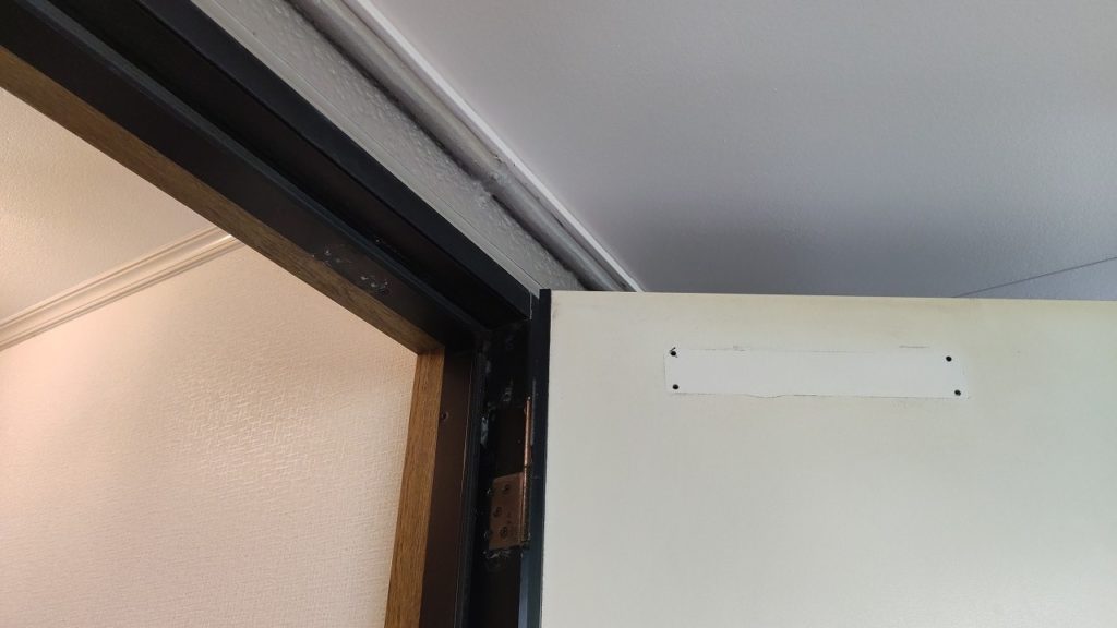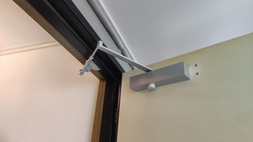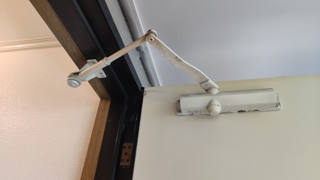 別件でお伺いしたお部屋で、ドアクローザーが劣化しており扉が最後まで閉まり切らないという症状がありました。