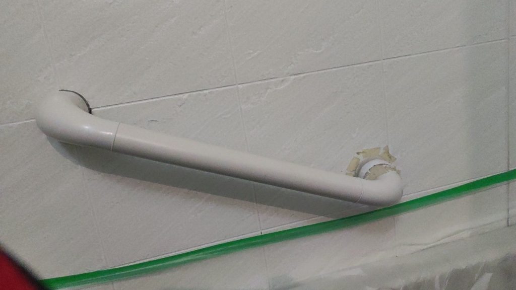 お風呂場の浴槽のところに設置されている手すりが、ずいぶん前からグラグラしているので直したいとのこと。
